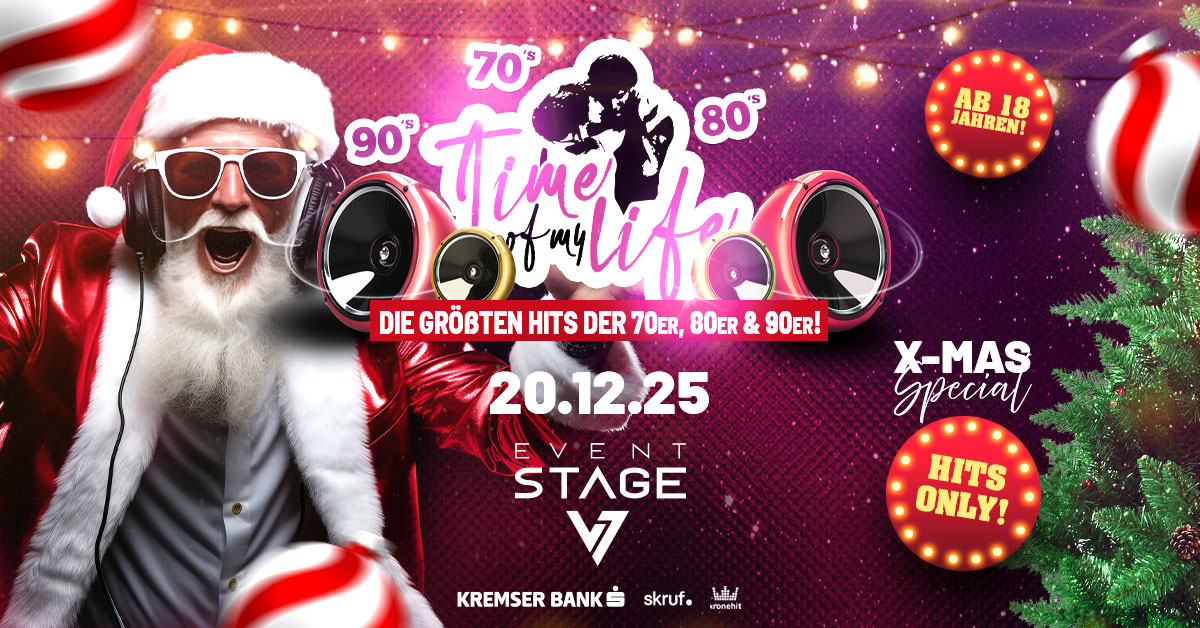 TIME OF MY LIFE – Die größten Hits der 70er, 80er und 90er! Wir feiern die größte Weihnachtsfeier in Krems!